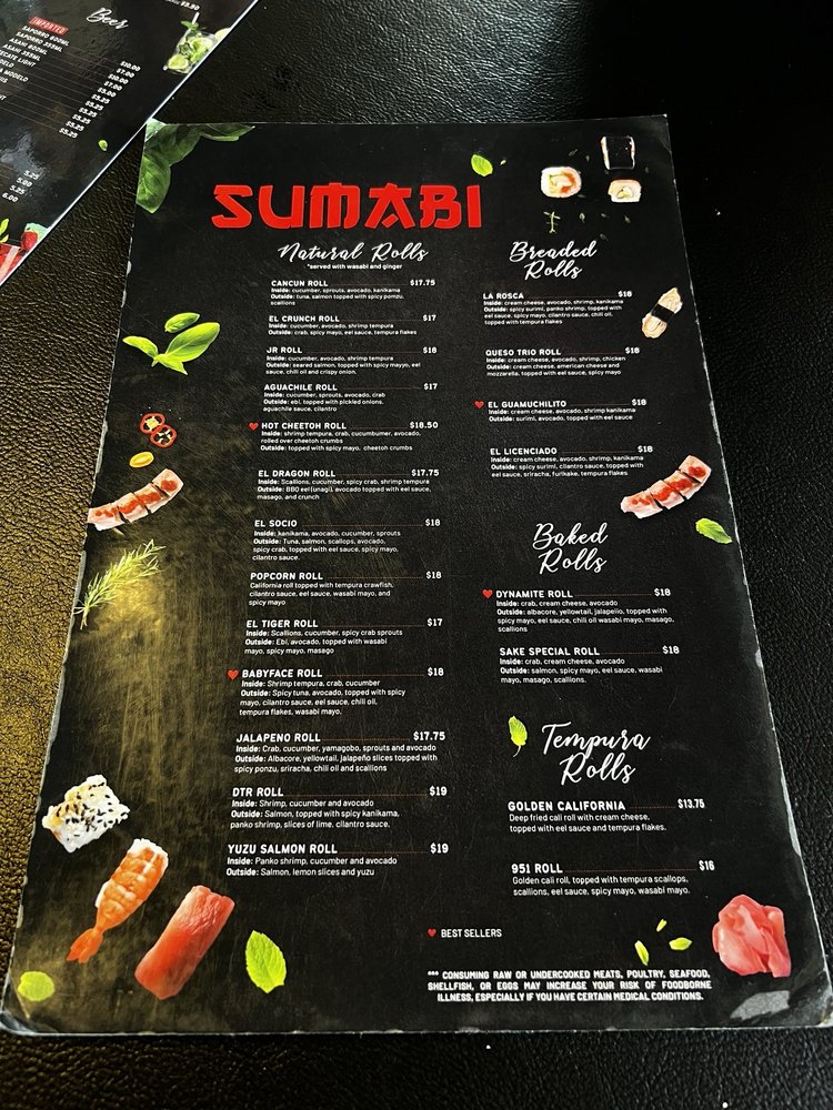 At Sumabi Sushi Mariscos Birria, located in Norco, CA, diners are treated to a delightful fusion of Japanese and Mexican cuisines. The menu is a vibrant tapestry of flavors, featuring succulent seafood tacos and innovative sushi rolls. Highlights include the Taco Camaron Enchilado—grilled shrimp on a corn tortilla with cheese and cilantro sauce, and the Hot Cheetoh Roll, a bold combination of shrimp tempura and avocado, topped with spicy mayo and hot Cheetos crumbs.